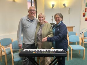 A new keyboard, kindly donated by Maureen Ashmore and her family via George Eliot Hospital Charity, is helping to transform the popular Singing for Breathing sessions for respiratory patients and those experiencing breathlessness at George Eliot Hospital. The gift honours Maureen’s late husband, Keith Ashmore, a much-loved respiratory patient who